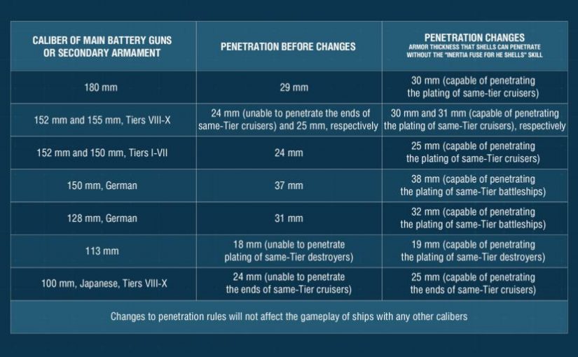 “We continue to test the modified plating for cruisers and Tier VI-VII battleships as well as the updated “Inertia Fuse for HE Shells” skill. Today we would like to tell you about the upcoming changes and the reasoning behind them.