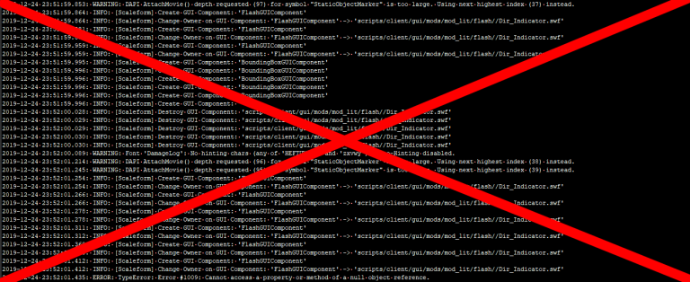 1.10.1.0 Python Cleaner By Stealthz Since patch 1.3 WG stopped turning in/out Pythnon log calls. Python log has become miles long because of this. All sort of garbage reports is filling python log. Component: ‘BoundingBoxGUIComponent’ 2019-12-20 21:00:31.568: INFO: [Scaleform] Destroy GUI Component: ‘BoundingBoxGUIComponent’ 2019-12-20 21:00:31.568: INFO: [Scaleform] Destroy GUI Component: ‘BoundingBoxGUIComponent’ – added the removal